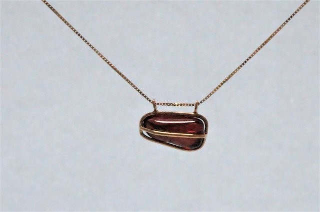 ご覧いただきありがとうございます。 1月の誕生石でもある「ガーネット」 一般的にはラウンド(まん丸)だったりオーバル(楕円)にカットされジュエリーに使用されていることがほとんどです。 今回のガーネットは人工的に加工されているものではなく 原石の形を生かし、そのまま磨かれた 世界に同じ形の石はないガーネットになります。 なかなかお気に入りのガーネットがみつからない! こちらいかがでしょうか? できるだけ「ころん」とした形が見えるように囲う部分を少なく4本の線で横から見ると +になるように K18YG ガーネット 15ミリ×8ミリ(長い方で) チェーン K18YGベネチアンタイプ40㎝(長さ調整のアジャスター丸カンあり) |